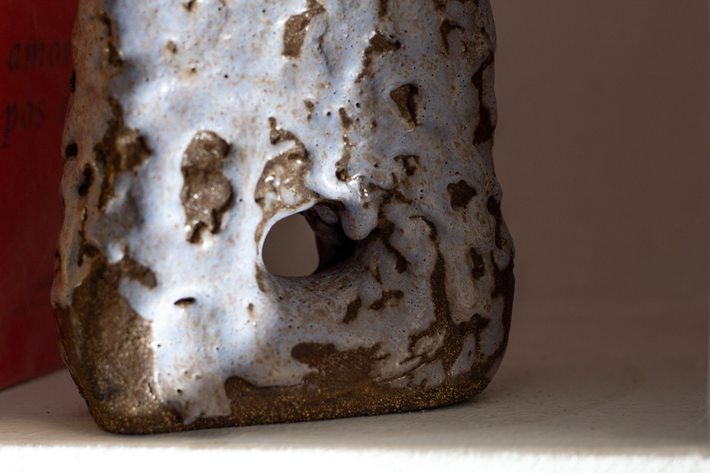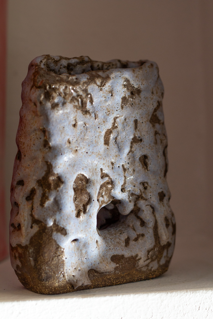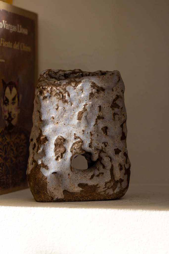 Gres negro chamotado, esmalte del taller nº3, técnica del pellizco, textura orgánica.